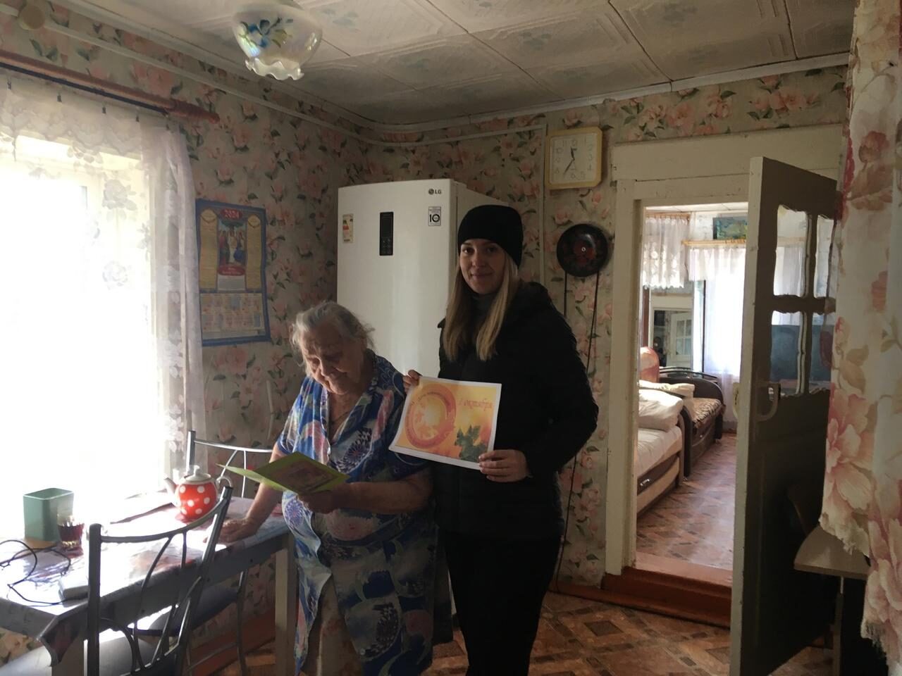 В преддверии Дня Победы проживающих в отделении Специализированный жилой дом для граждан пожилого возраста и инвалидов посетили учащиеся Вахтанской средней школы, поздравили с приближающимся праздником и вручили открытки, сделанные своими руками