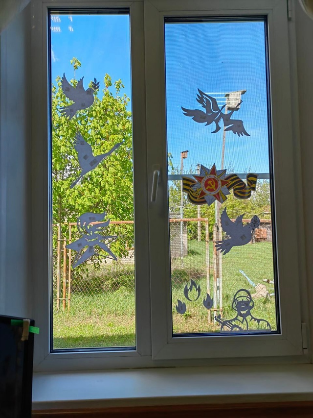 В преддверии празднования мы украшаем окна тематических вырезанными изображениями и символами Победы. Это дань уважения и благодарности тем, кто сражался за нашу свободу и мирное небо над головой.