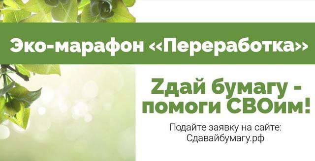Всероссийский Эко-марафон ПЕРЕРАБОТКА осенью 2024 года в Нижегородской области планирует проведение акции под девизом: «Zдай бумагу – помоги СВОим», который проводится при поддержке Министерства экологии и природных ресурсов Нижегородской области и краудфандинг проекта «Подари Дерево»